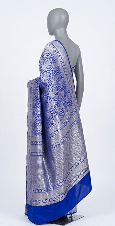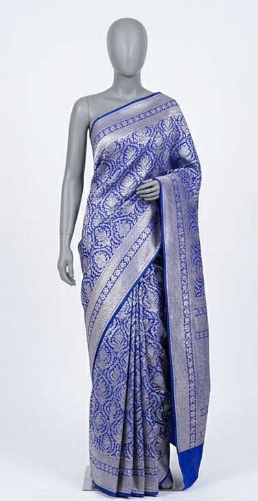 Experience the ‘scroop’ and sheen of genuine Katan Silk. When you drape this Katan-by-Katan Banarasi, you are enveloped in the concentrated soul of its structural integrity which ensures flawless pleating and a regal silhouette that stays in place from day to night. For the modern Indian bride or the vintage collector, this saree represents the pinnacle of sustainable luxury fashion.